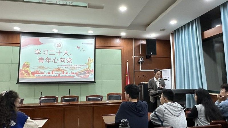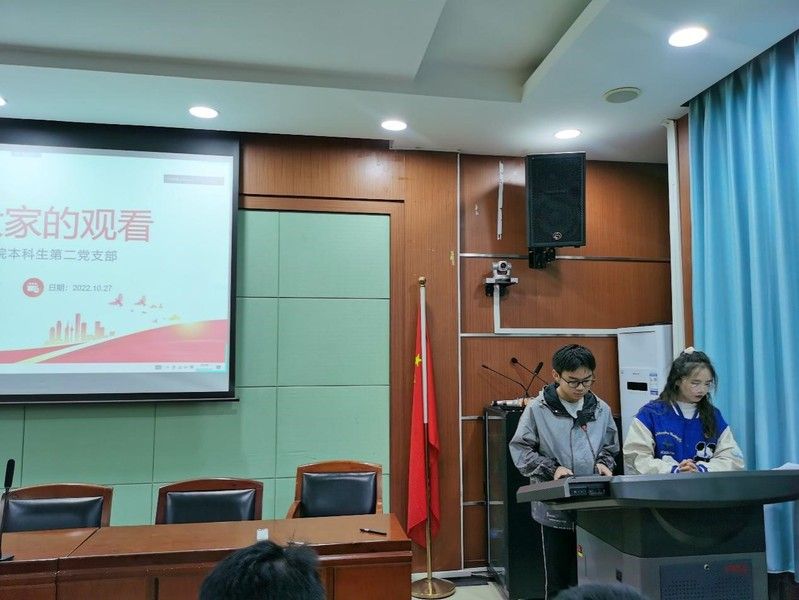 最后,支部成员就习近平总书记二十大重要讲话精神专题交流心得,入党积极分子万长芊、孟明烁、蒋欣然等同学上台进行分享。与会成员在交流分享中积极思考、认真记录。