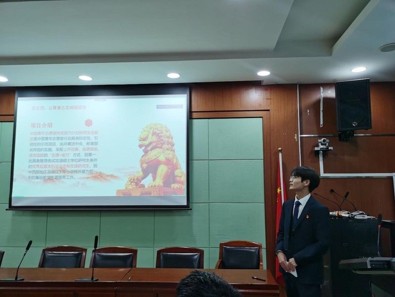 会议第四项,专题学习环节,首先,由杨春亭、刘心睿、黎国成同志以二十大为主题,宣讲中南大研支团的故事。中南大研究生支教团以教书育人为工作重点与核心,自组建以来始终坚持“支教扶贫,铸魂育人”的初心与使命,志愿者们牢记教师的第一身份,在中西部贫困地区从事中小学教学工作过程中,帮助贫困学生走出大山、了解世界、改变命运。