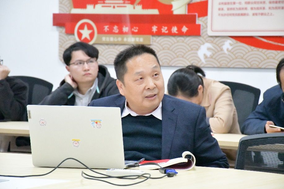 体制改革实践、服务地方经济社会发展,支部特邀主持过多项国家社会科学基金课题的梅建明同志做“学习二十大精神系列•国家社科基金申报经验分享”报告,报告由陈高副教授主持,梅建明教授强调选题要响应国家重大战略需求,重视现实性与延续性的结合,文献综述重在从学术史角度梳理和总结,课题研究要选准新视角,要在框架思路上下足功夫,厘清重点,分点列明,还强调了申报书、申报学科、参考文献等应注意的问题。梅教授的经验分享给老师们以极大启发,现场进行了热烈讨论,魏福成、孙玉坤、俞秀梅、刘潘等同志就相关问题与梅建明教授进行讨论。