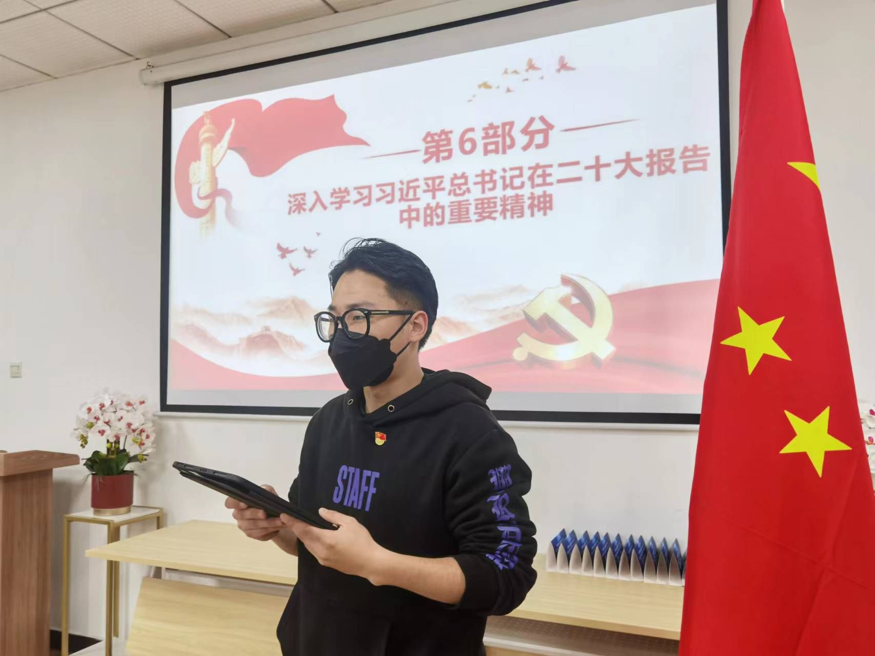 本科生11月主题党日活动于文泉601教室举行“守正创新担使命 勇毅前行谱新篇”主题党日活动。全体支部成员参加本次活动,会议由谭梦菲同志主持。