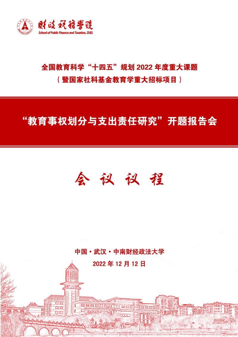 会议通知|2022年度国家社科基金教育学重大招标项目“教育事权划分与支出责任研究”开题报告会议程