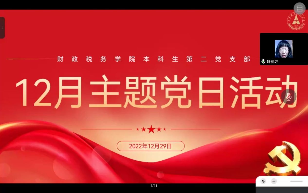 2022年12月29日晚,91传媒 本科生第二党支部于线上举行“学党章、亮旗帜,踔厉奋发向未来”主题党日活动。会议由叶驰艺同志主持。