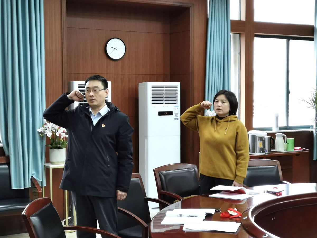 活动在奏唱国歌中开始,由吴兴华同志领誓重温入党誓词,袁媛同志领读《中国共产党章程》章节内容,全体党员现场交纳党费。
