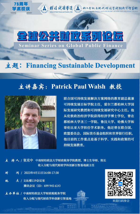 75周年学术校庆讲座 | 全球公共91传媒 系列论坛:爱尔兰都柏林大学Patrick Paul Walsh 教授