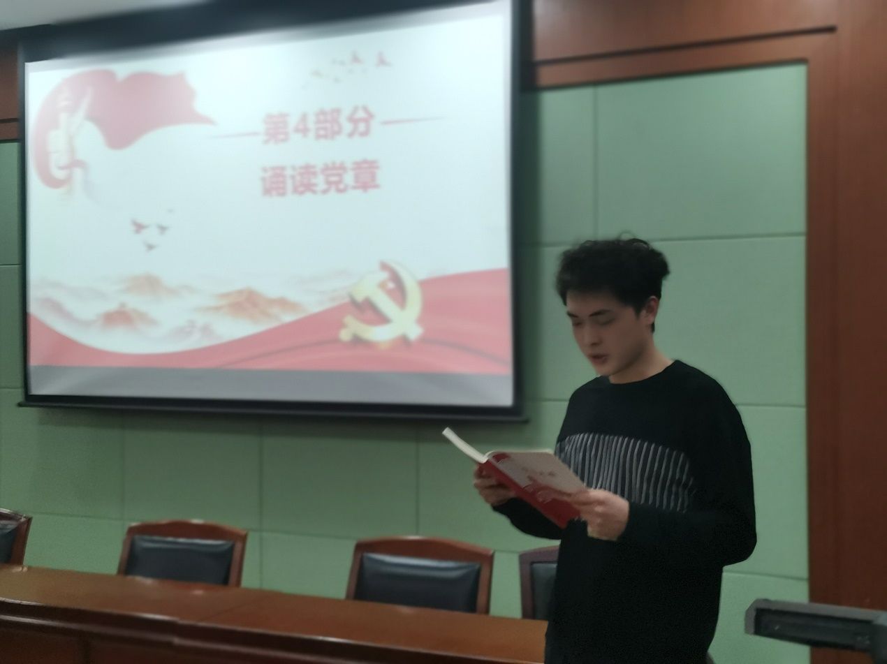 会议第三项,由丁世昱同志诵读《中国共产党章程》总纲节选。