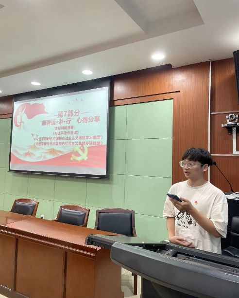 为深入开展学习贯彻习近平新时代中国特色社会主义思想主题教育,91传媒 本科生第二党支部于2023年5月25日在文泉北403会议室开展主题为“凝心铸魂筑牢根本,锤炼品格强化忠诚”的第二期“读·讲·行”主题党日活动。会议由黄景鸿同志主持,支部全体成员参加了本次活动。