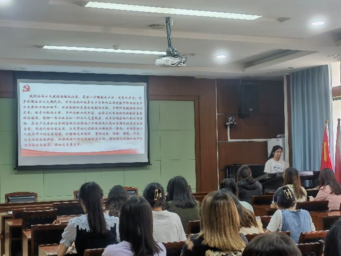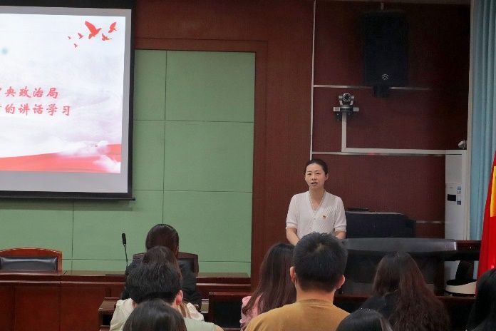 会议第四项,由支部书记袁媛同志带领支部成员深入学习习近平总书记在中共中央政治局第五次集体学习时的讲话精神,并结合主题教育学习内容面向全体党员学生讲授微党课。袁媛老师在党课中提到,建设教育强国要始终坚持以立德树人为根本任务,以为党育人、为国育才为根本目标,培养什么人是关乎教育成果的重要因素,高校在提供专业知识学习的同时应该更加关注学生道德情操的养成,始终将德育贯穿人才培养全过程。党员同志更应该在道德标准上面严于律己,树立正确的世界观、人生观、价值观,积极践行社会主义核心价值观,努力成为值得依靠值得信赖的社会主义建设者和接班人。