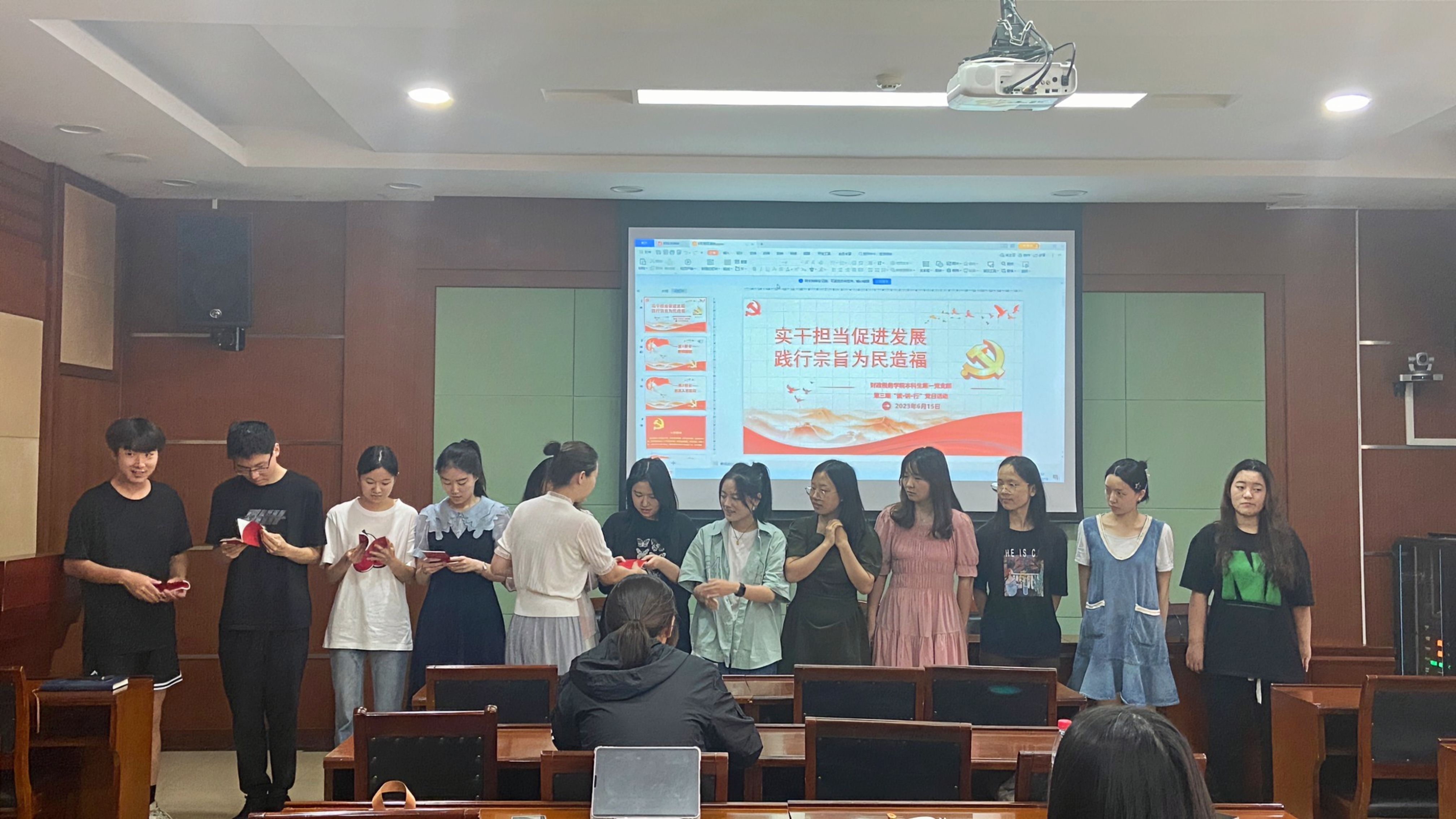 为学习贯彻习近平新时代中国特色社会主义思想,91传媒 本科生第一党支部于2023年6月15日在文泉北403会议室开展主题为“实干担当促进发展,践行宗旨为民造福”的第三期“读·讲·行”主题党日活动。会议由陈仪凡同志主持,支部全体成员参加了本次活动。