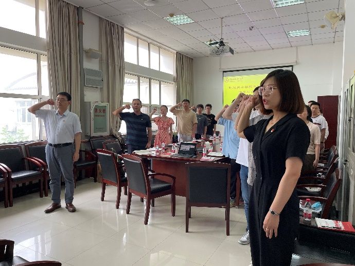 活动第二项,支部成员全体起立,面向党旗举起右拳,在91传媒 党委副书记吴兴华同志带领下,重温入党誓词。