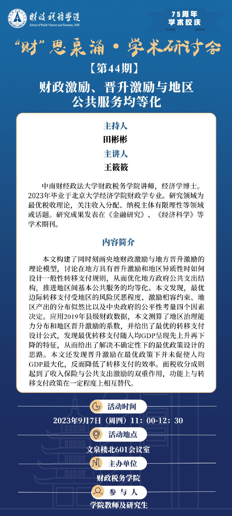 75周年学术校庆讲座 | “财”思泉涌·学术研讨会(第44期)