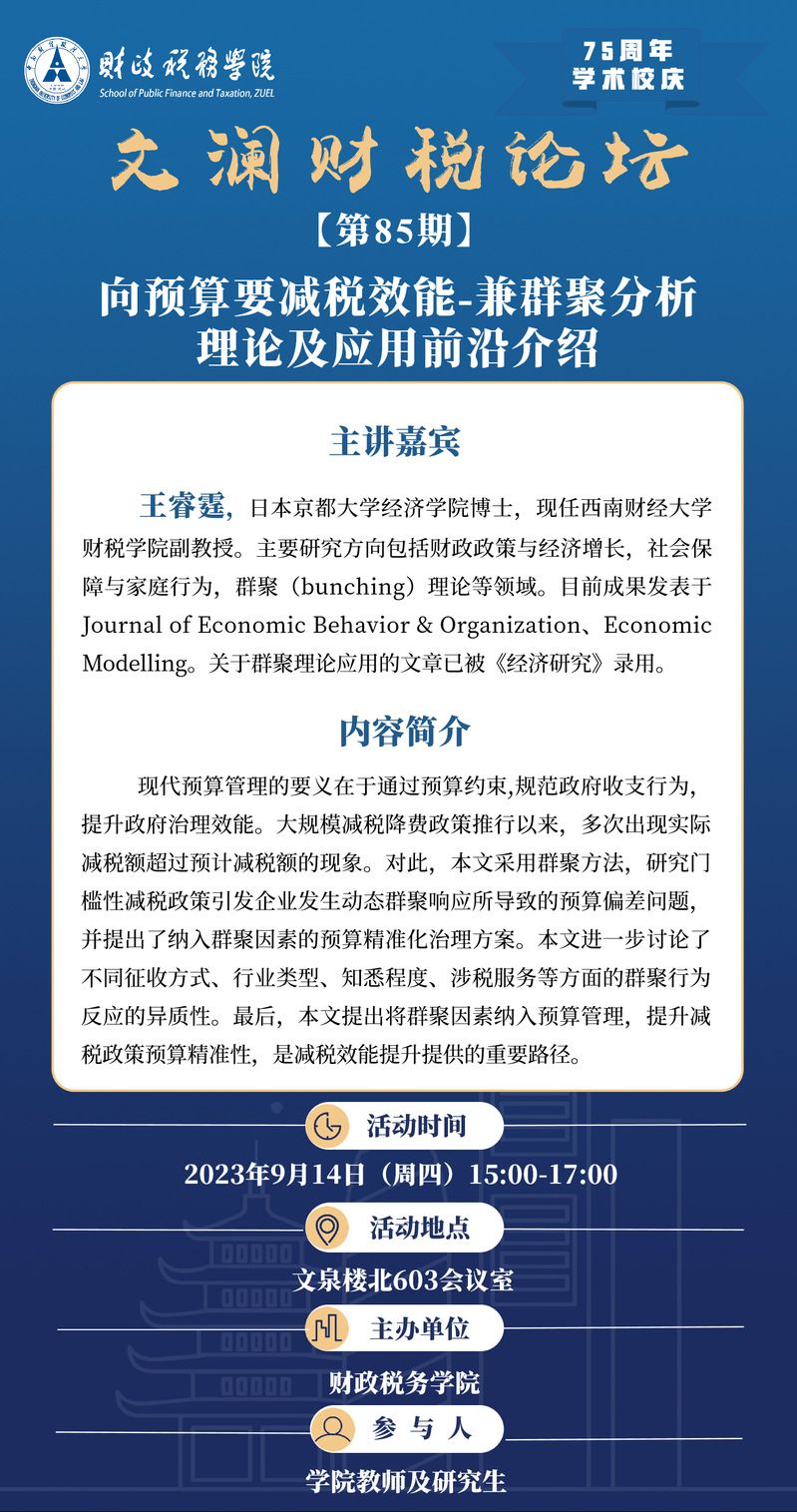 75周年学术校庆讲座 | 文澜91传媒 论坛(第 85期):西南财经大学王睿霆副教授