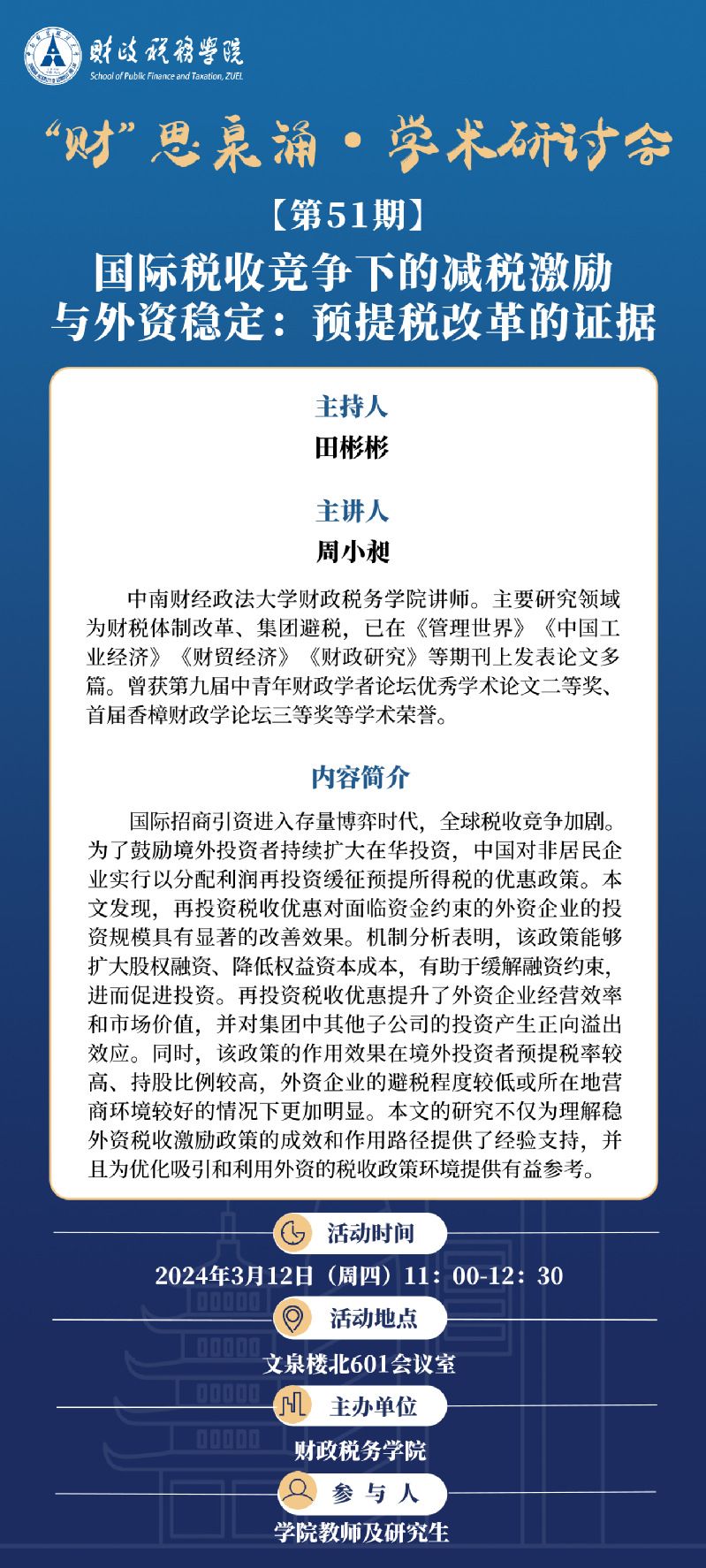 【讲座预告】“财”思泉涌·学术研讨会(第51期)