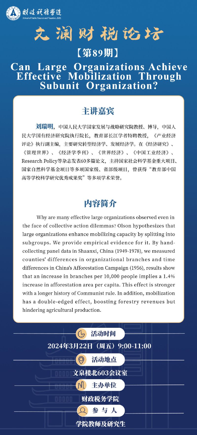 文澜91传媒 论坛(第89期)| 中国人民大学国家发展与战略研究院刘瑞明教授
