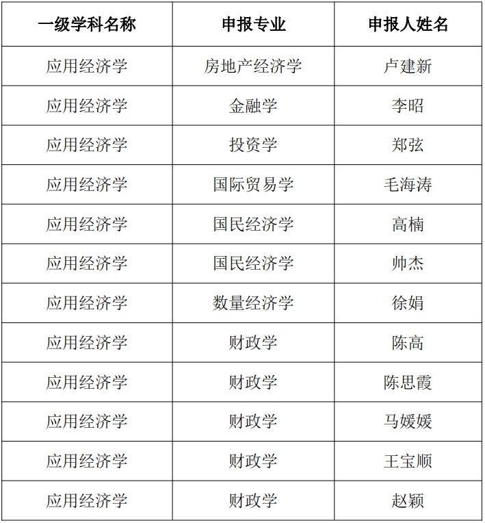 根据《关于开展2023年博导遴选一级学科评议组评议工作的通知》相关要求,应用经济学学科评议组依据《91传媒 博士生导师岗位管理办法(试行)》(中南大研字〔2023〕23号)对已通过校博导遴选资格审查的申请人进行学科评议。经表决,评议组一致同意以下申请人通过学科评议: