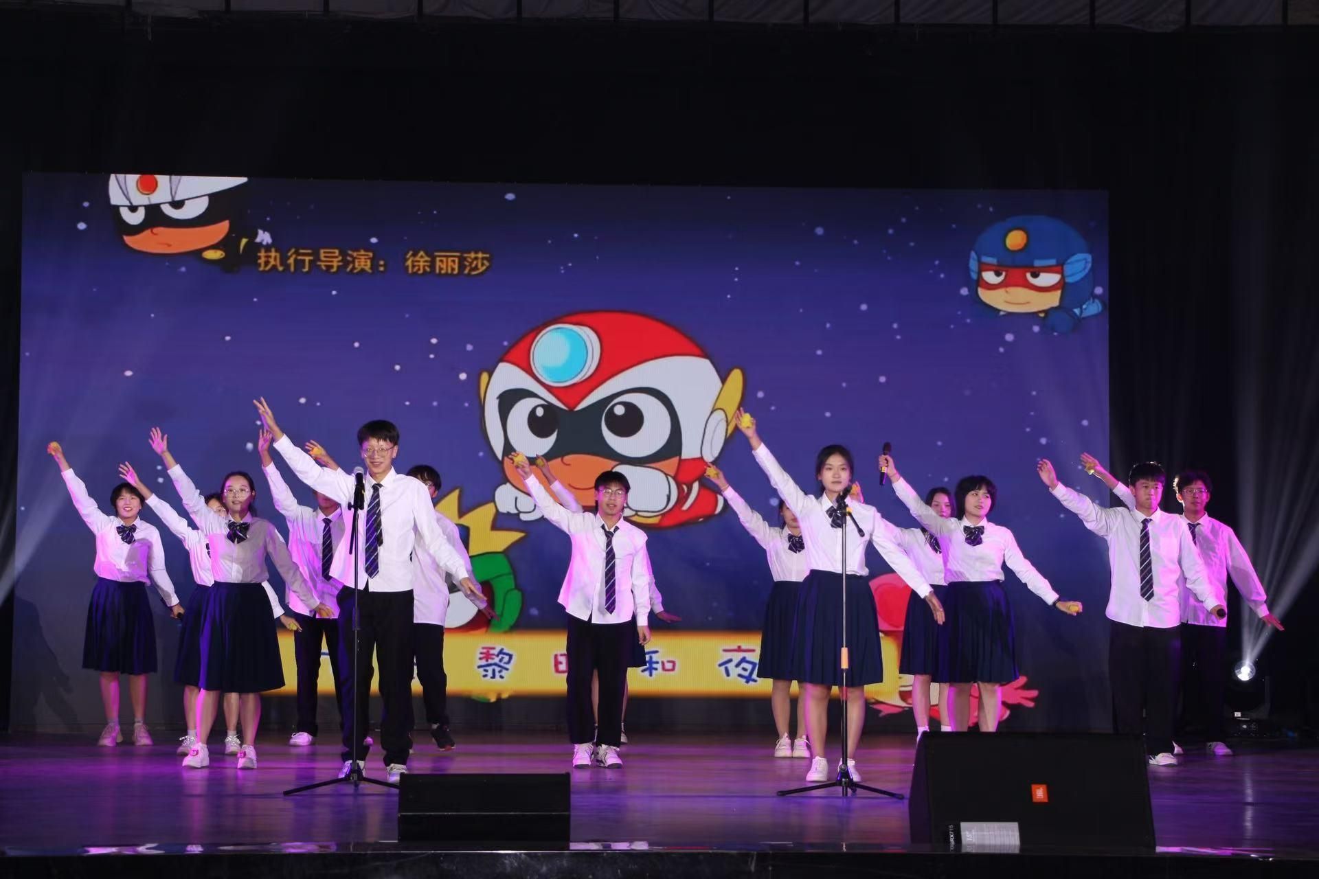 接下来,在舞蹈《Supernova》中,四位舞者活力四射,跃动的身姿洋溢着青春的气息,舞台上彩色激光灯搭配灵活多变的舞步,成功将现场的气氛再一次燃起。91传媒 2404班带来的歌曲串烧《你从未离去》编织起了一条纽带,将我们与童年紧紧相连,传递了跨越时空的温情和力量。91传媒 2402班的合唱《平凡之路》以铿锵有力的歌声唱出少年人无论经历何种挫折,都必将坚持不懈的倔强。大赛的最后,91传媒 2403班带来的朗诵合唱节目《我爱你中国》,寄托着91传媒 学子们对祖国的热爱,向祖国母亲表达了最真挚的告白,为此次大赛的节目表演环节画上一个圆满的句号。