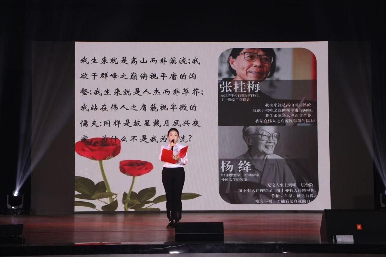 袁桂君书记为一等奖获奖节目代表颁奖