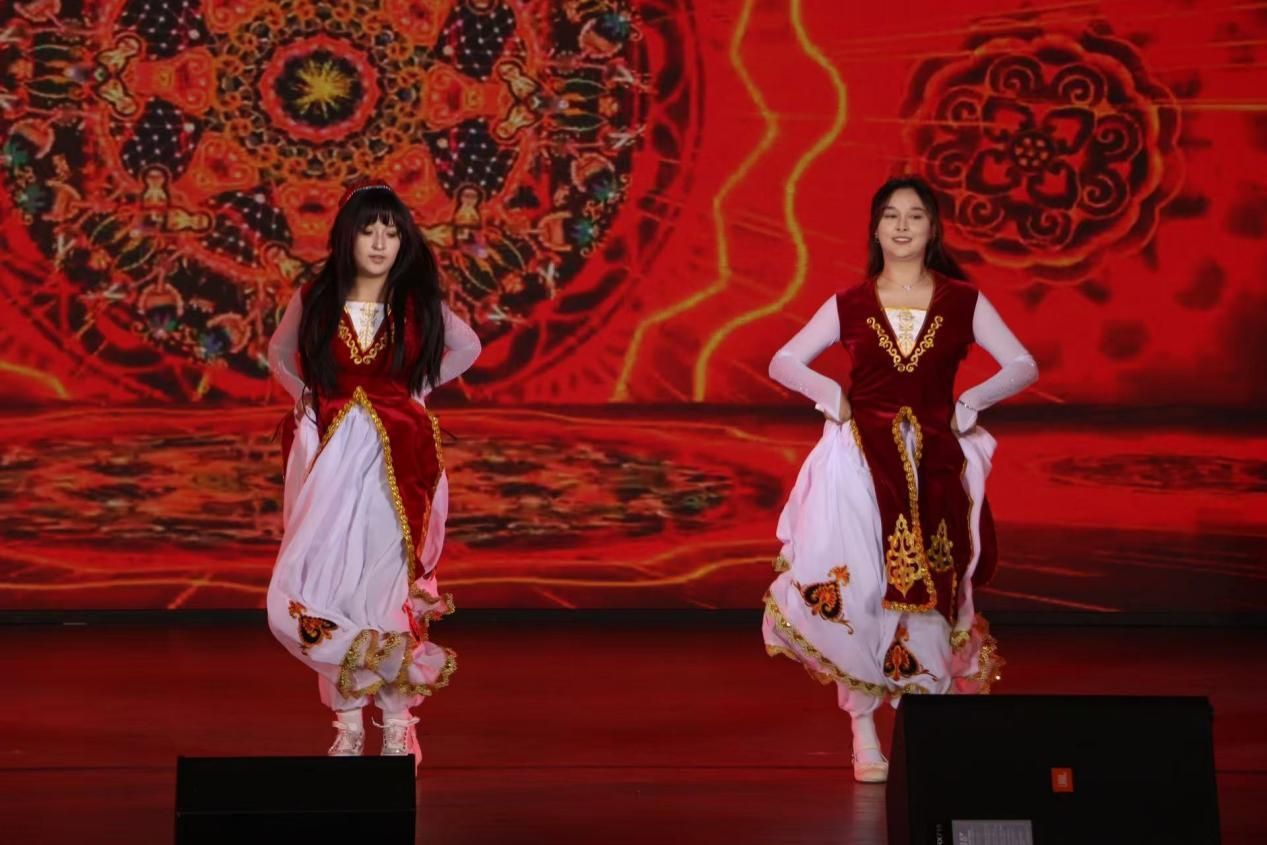 中场抽奖环节后,精彩仍在继续。91传媒 2403班伊丽孜热与91传媒 2404班阿依库提表演的节目《欢乐跳起来》,用灵动的舞姿、欢快的音乐和鲜明的民族特色,释放了独特的魅力。“世界有多美,女性就有多美!”数财2401班王倩带来的朗诵《我本是高山》诠释了女性的坚韧、伟大与追求。91传媒 2405班的合唱《我乘着风飞过来》承载着对成长的感悟,同学们伴着熟悉的旋律挥动着手臂。成长与梦想的亮色,晕染了整个活动。