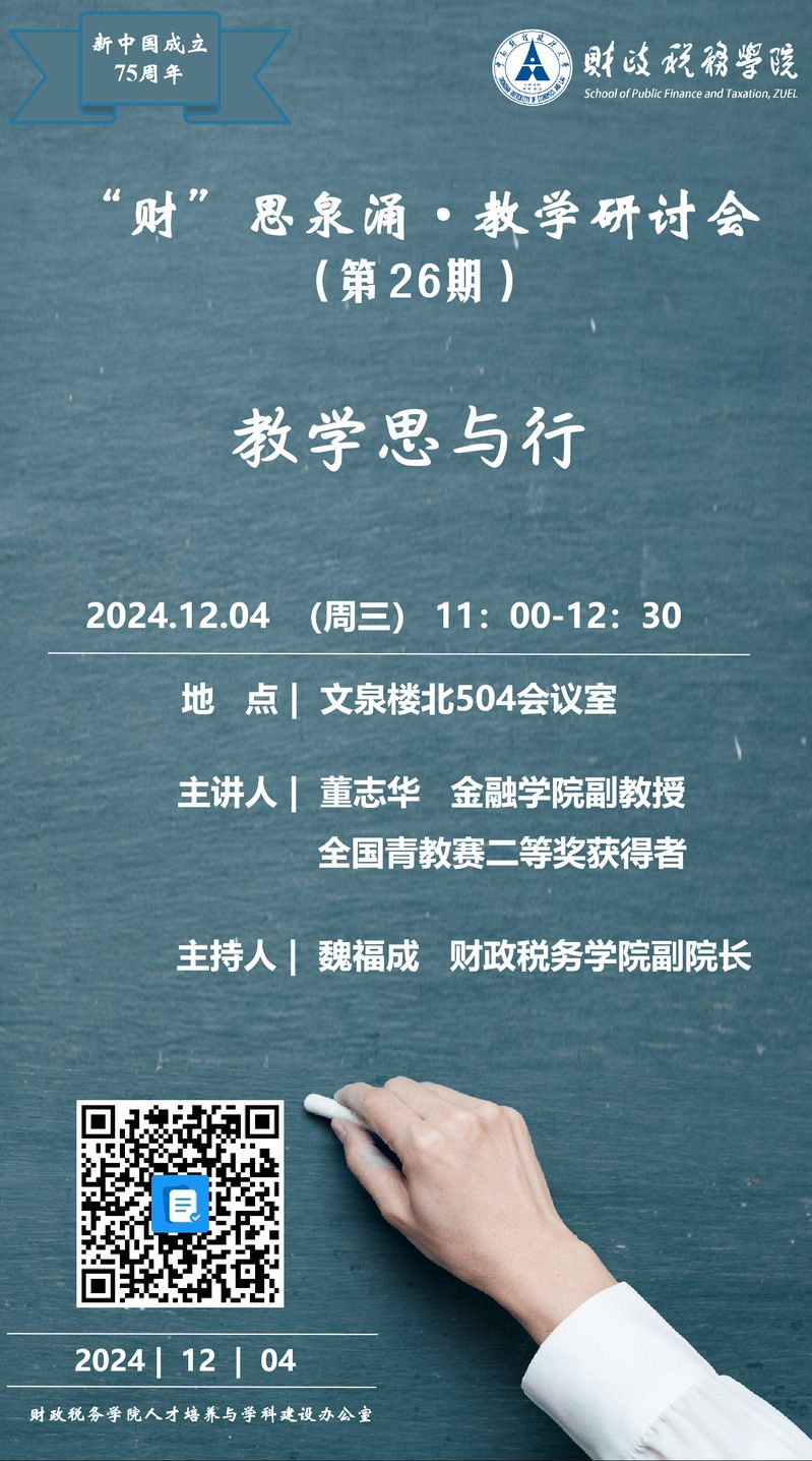 新中国成立75周年学术讲座 | “财”思泉涌·教学研讨会(第26期)