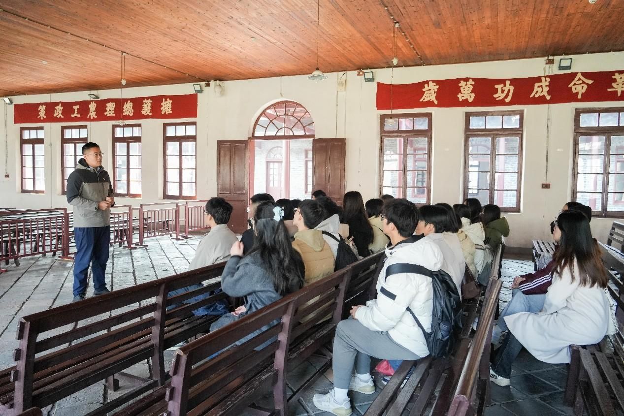在武昌中央农民运动讲习所旧址纪念馆,大家有序参观总队部、常委办公室、教务处、大教室以及大操场等复原陈列,细致了解农讲所的历史沿革和革命精神内涵。期间,学校研究生宣讲团梁睿涵同学进行实地理论宣讲,实现了理论与实践的紧密结合,让党员们对革命历史有了更为深刻和全面的认识。