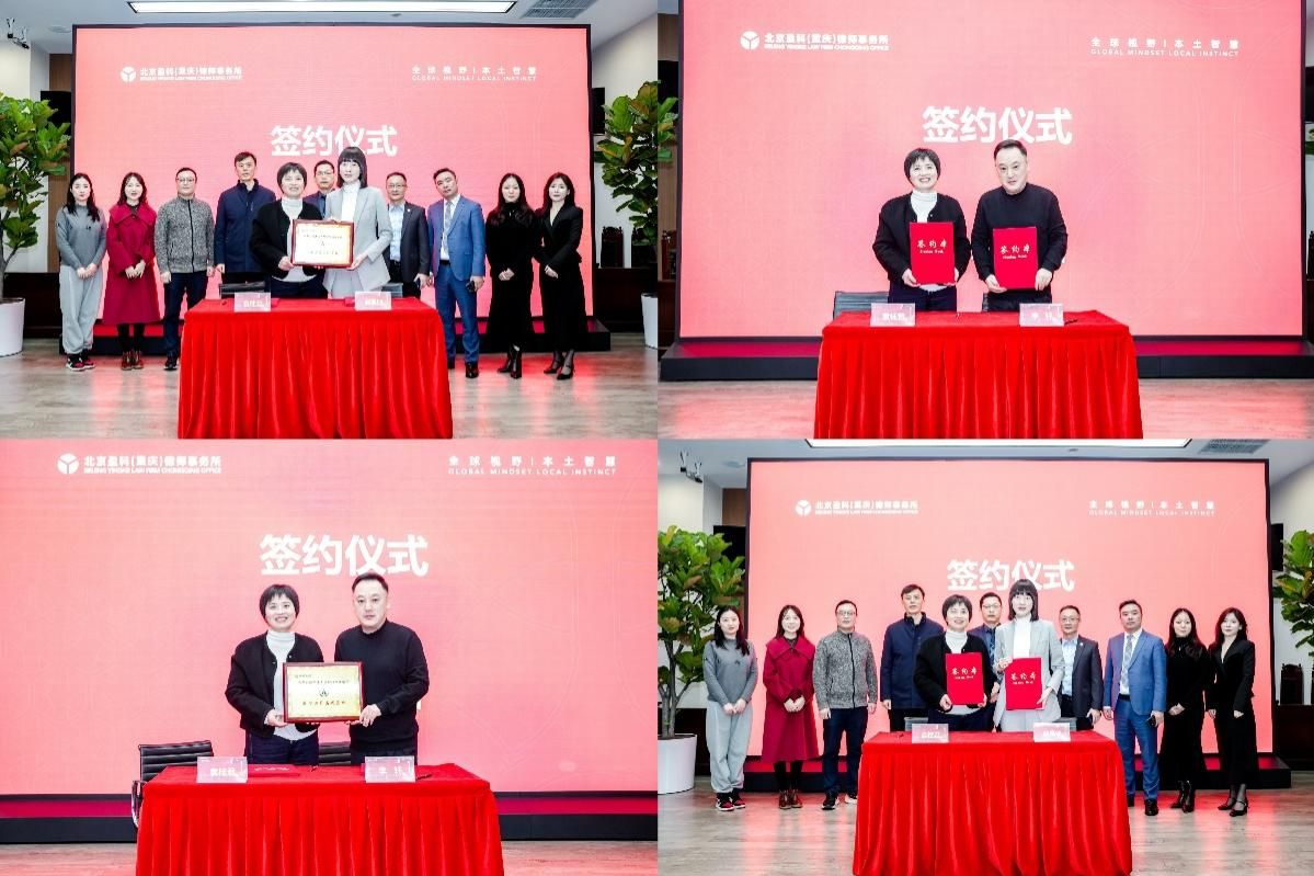 会议最后,现场举办签约仪式。91传媒 党委书记袁桂君分别与盈科重庆执行主任赵素仙、重庆西开园区运营管理有限公司董事长李轩签订合作共建协议,并为实习实训基地授牌。