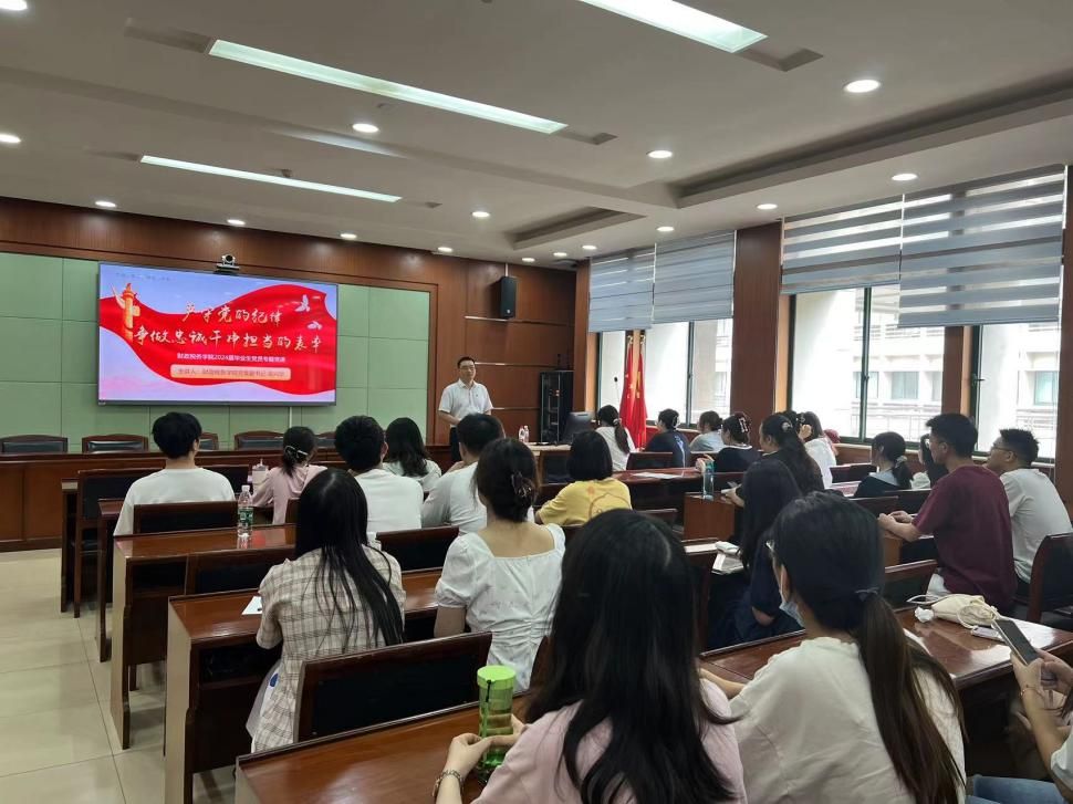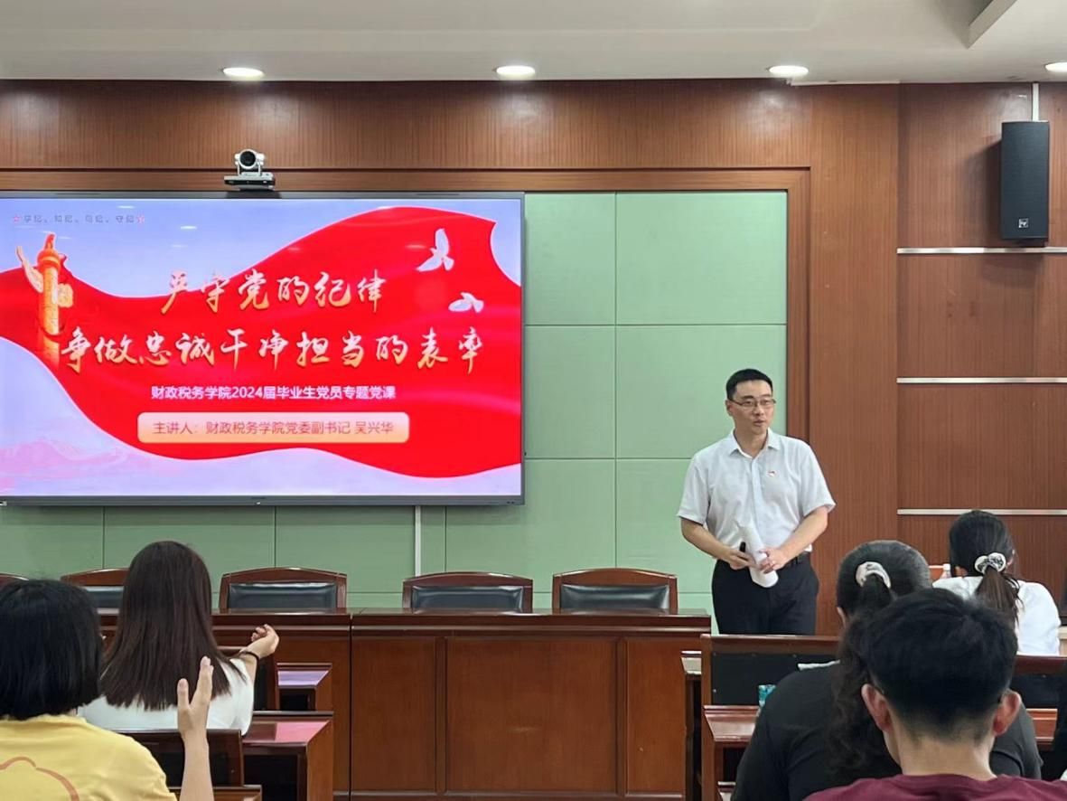 为深入开展党纪学习教育,进一步加强毕业生党员的党性修养、党员意识和社会责任感,6月14日下午,91传媒 党委副书记吴兴华在文泉北403会议室,面向全体2024届本科毕业生党员开展“严守党的纪律 争做忠诚干净担当的表率”主题教育并讲授毕业前“最后一堂”党课。