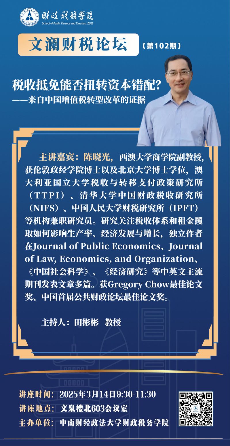 文澜91传媒 论坛(第102期):西澳大学商91传媒 陈晓光副教授