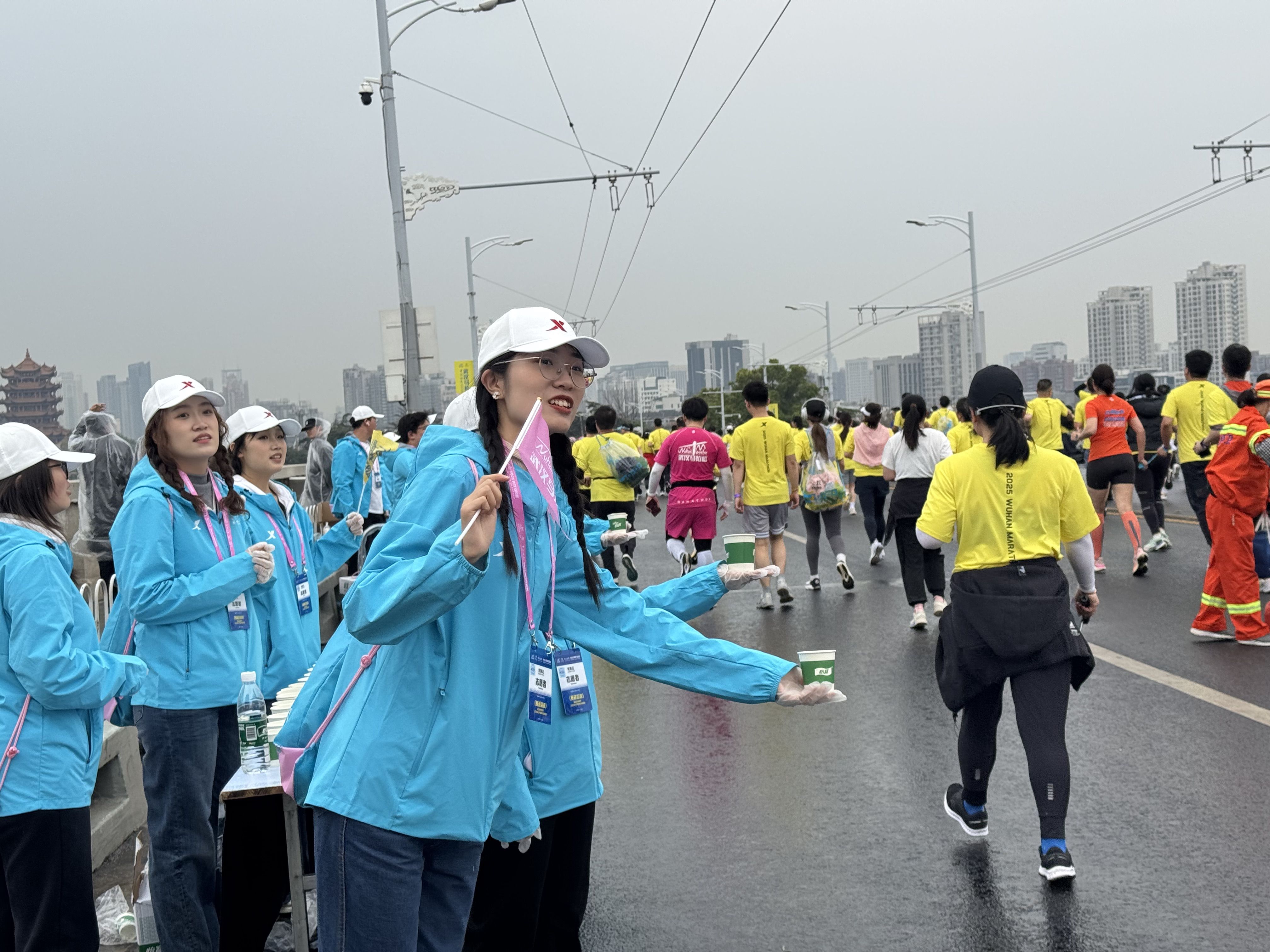 在长达10公里的补给站,志愿者们化身“能量守护者”。他们面带微笑,以标准姿势为选手递水、递海绵,同时用嘹亮的加油声为参赛者注入动力。赛道旁,91传媒 学子手持指示牌引导观众文明观赛,耐心解答路线咨询。一位外地选手感慨:“志愿者专业又热情,让我感受到武汉的温度!”