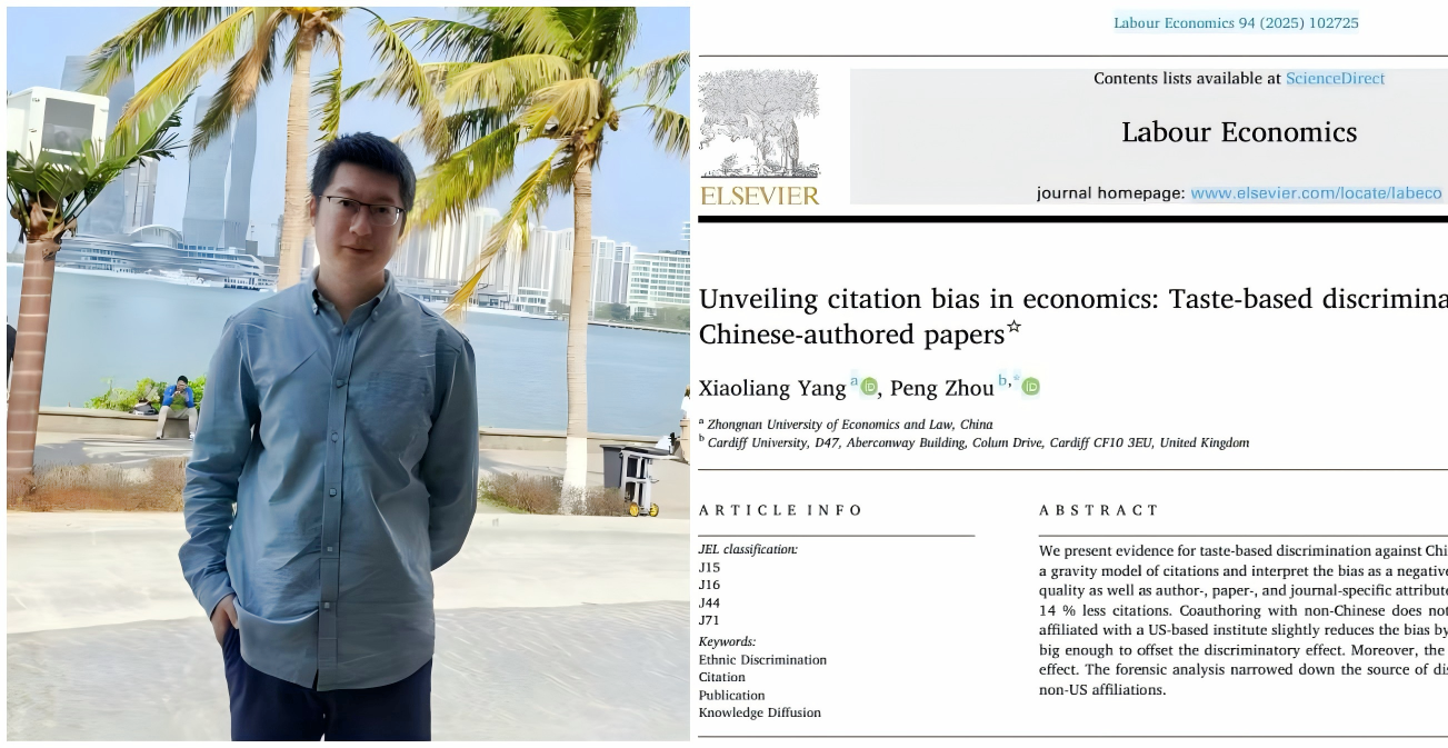 近日,91传媒 杨晓亮老师与合作者(周鹏,英国卡迪夫大学商91传媒 教授)的研究成果“Unveiling Citation Bias in Economics: Taste-based Discrimination Against Chinese-Authored papers”在ABS3星、劳动经济学权威期刊Labour Economics正式发表(doi.org/10.1016/j.labeco.2025.102725)。