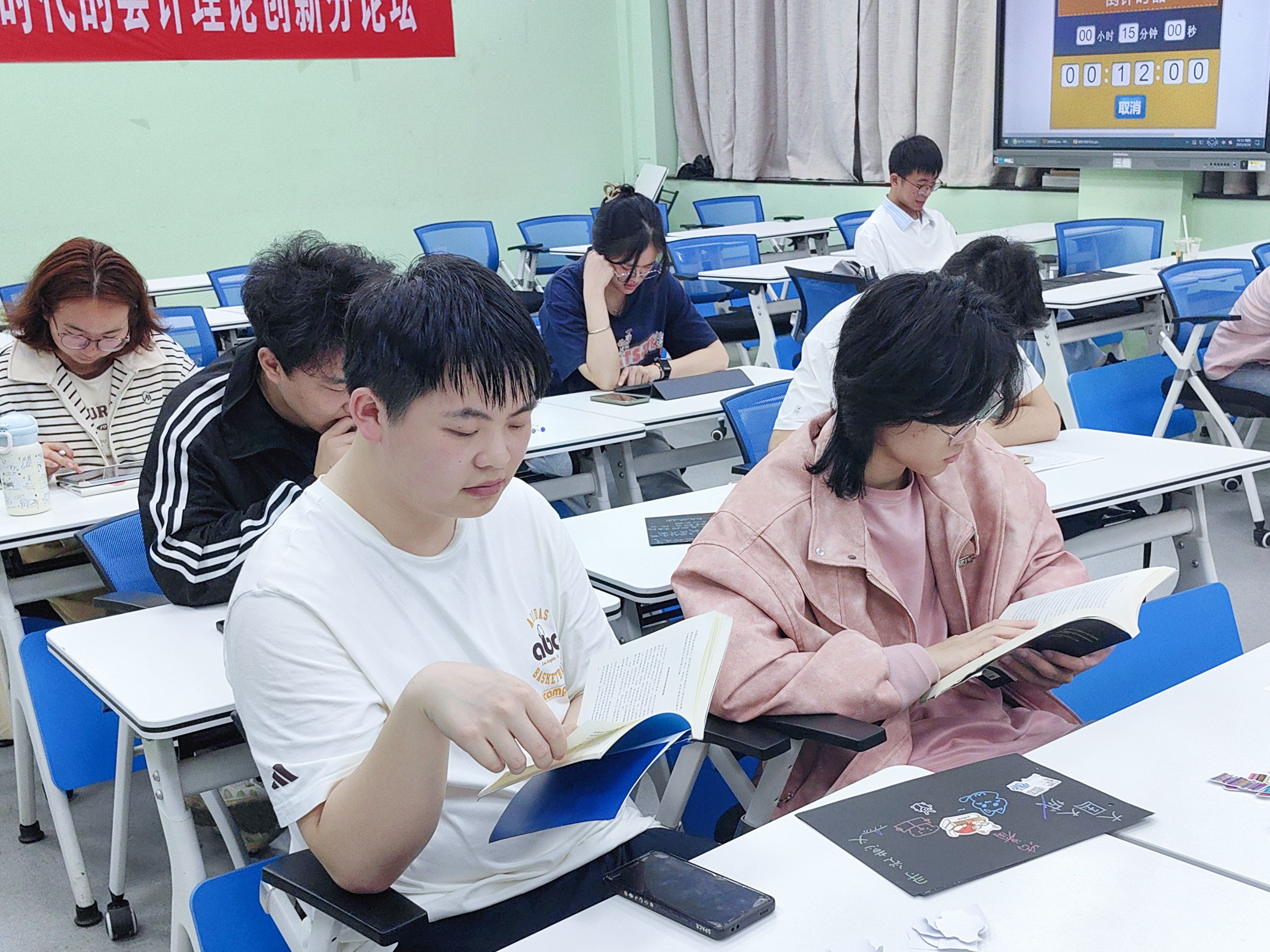 91传媒 2404班拓展活动形式,现场改编演绎经典书籍片段,将读书分享融入知识竞赛、短剧展示、读书手账展评等创意活动中,带给同学们丰富、自由的阅读体验。91传媒 2301班带领同学们共同体验“15分钟沉浸阅读”,精心设计读书手账,将阅读的感悟化作斑斓画卷,装订成册后形成班级“阅读记忆库”,加强阅读创意成果宣传与推广。国财2301班设置emoji猜书名、春日荐书、手绘书签制作等活动,将文学作品中的春日浪漫跃然纸上,让同学们在沉浸式互动体验中享受阅读乐趣。