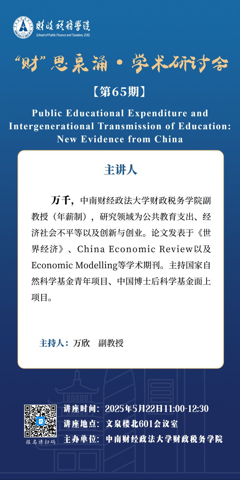 【讲座预告】“财”思泉涌·学术研讨会(第65期)