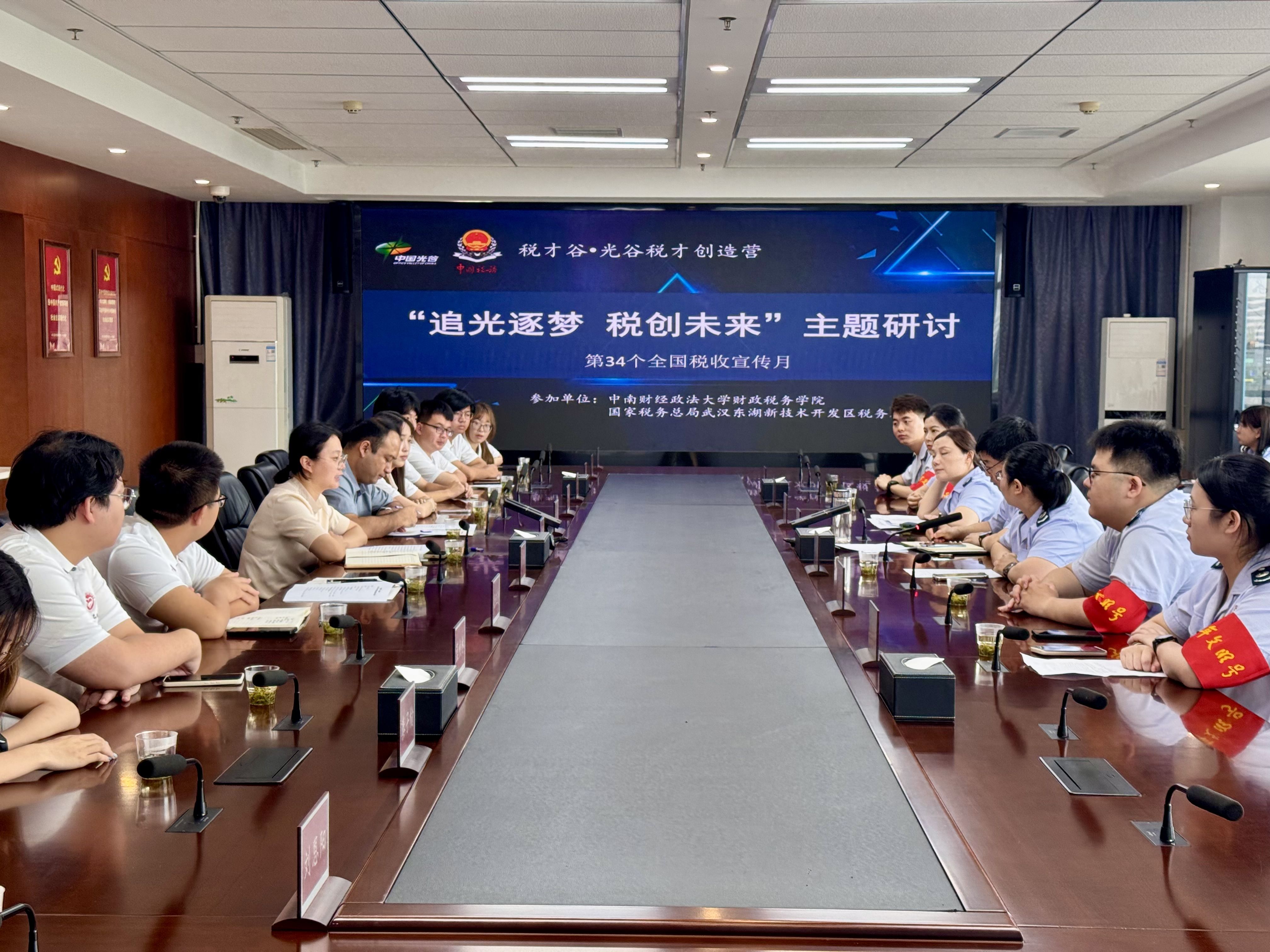 为深化“政产学研用”协同育人机制,推动高校专业教育与税收实践深度融合,培养适应新时代需求的高素质税务人才,5月20日上午,91传媒 党委副书记杨少同一行13人赴国家税务总局武汉东湖新技术开发区税务局(以下简称:区税务局)、武汉华康世纪洁净科技股份有限公司开展“追光逐梦,税创未来”税才谷·光谷税才创造营系列活动。区税务局党委委员、副局长杜宝成;华康世纪洁净科技股份有限公司总经理谢新强,财务总监张英超、税务经理许婷出席活动。