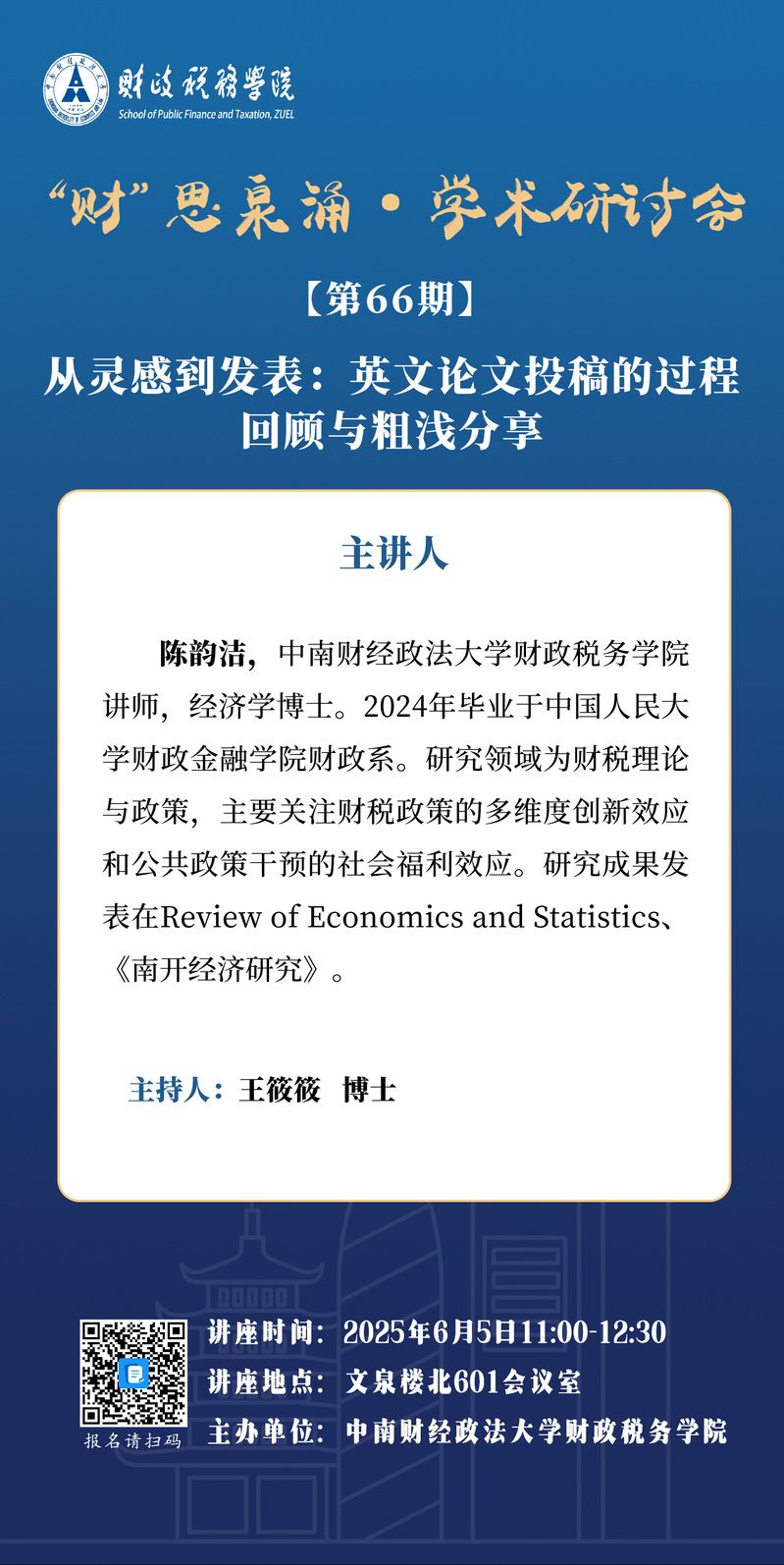 【讲座预告】“财”思泉涌·学术研讨会(第66期)
