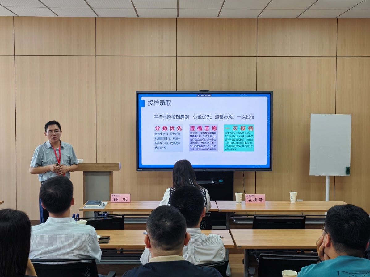 为持续优化本科招生工作体系,提升招生咨询服务水平,91传媒 于6月5日下午在文泉楼北503会议室召开2025年本科招生咨询培训会。学生工作部副部长石凌、学校招生工作办公室穆帆应邀作专题培训。91传媒 党委书记袁桂君、副书记杨少同、91传媒 招生咨询工作组全体老师及学生志愿者参会。会议由院党委副书记杨少同主持。