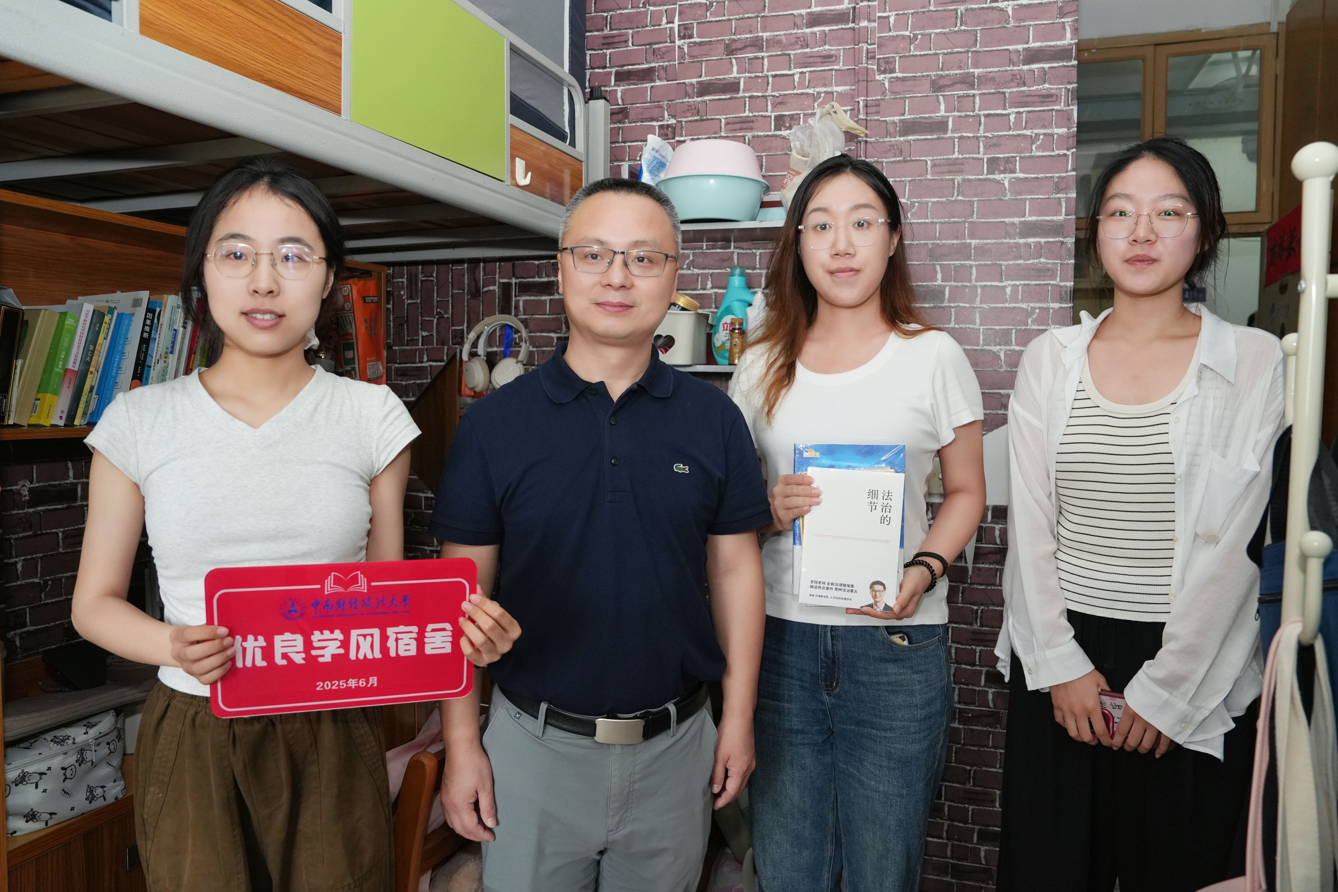 陈狮向中区12栋414授予“优良学风宿舍”,对宿舍同学表示祝贺,并向她们赠书。陈狮与同学们亲切交流,鼓励她们继续在学习生活中发挥榜样引领作用,带动91传媒 学子共同进步。