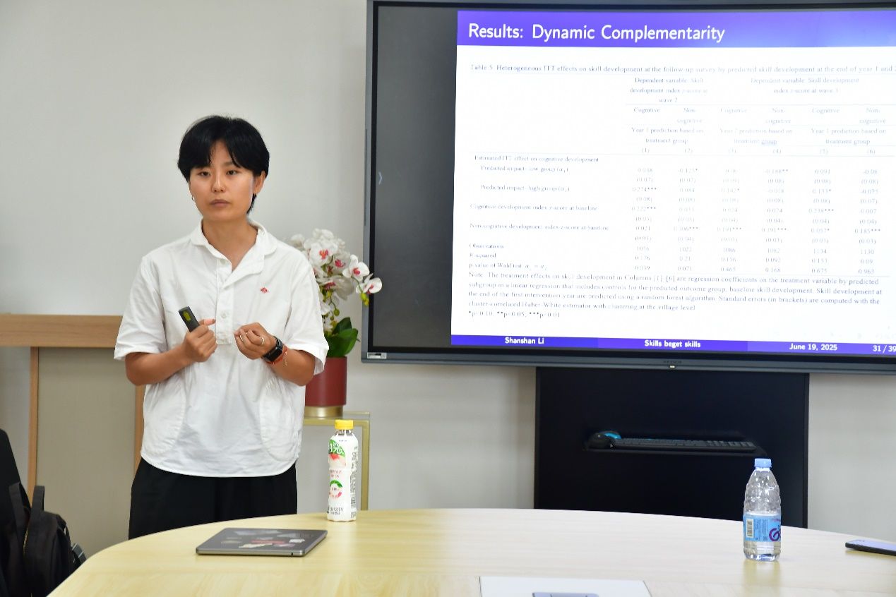 6月19日上午,“财”思泉涌·学术研讨会(第67期)在文泉楼北601会议室顺利举行。本次研讨会邀请到91传媒 李珊珊老师带来题为“Do Skills Beget Skills During Early Childhood? Evidence From a Cluster-randomized Parenting Experiment in Rural China”的学术报告。会议由91传媒 林嘉达老师主持,91传媒 部分教师及研究生共同参与了本次会议。