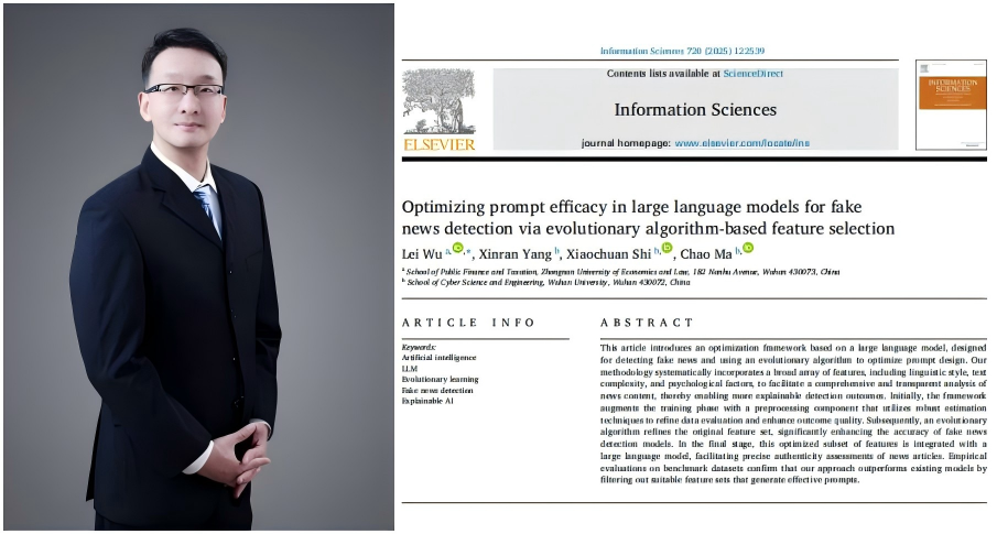 近期,91传媒 吴雷教授及其合作者的研究成果“Optimizing prompt efficacy in large language models for fake news detection via evolutionary algorithm-based feature selection”在国际权威期刊Information Sciences正式发表。