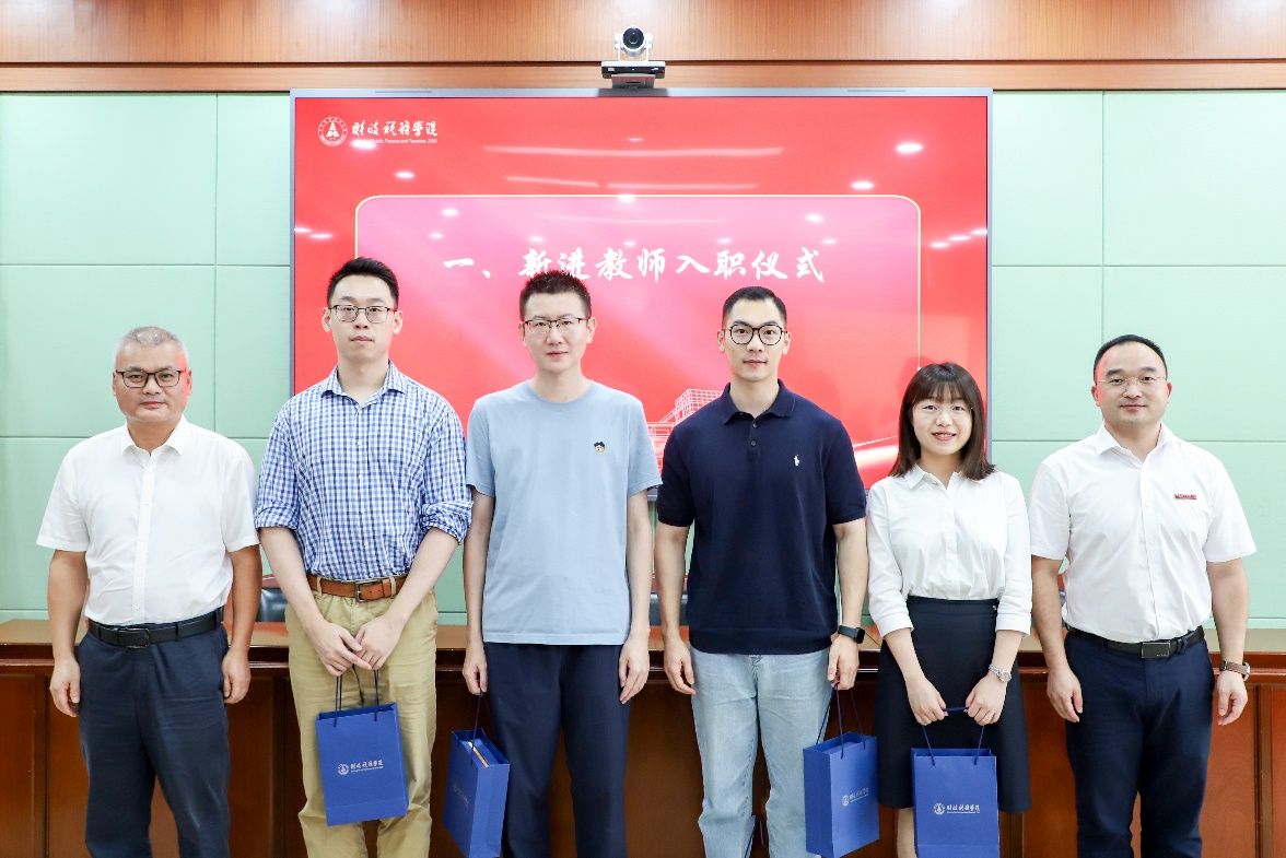 新入职教师分别上台作自我介绍并发表入职感言。91传媒 院长鲁元平、党委书记徐警武为新进教师颁发入职纪念品,初任教师导师程黎、亓寿伟、毛晖和万欣4位教师代表为新进教师佩戴校徽。