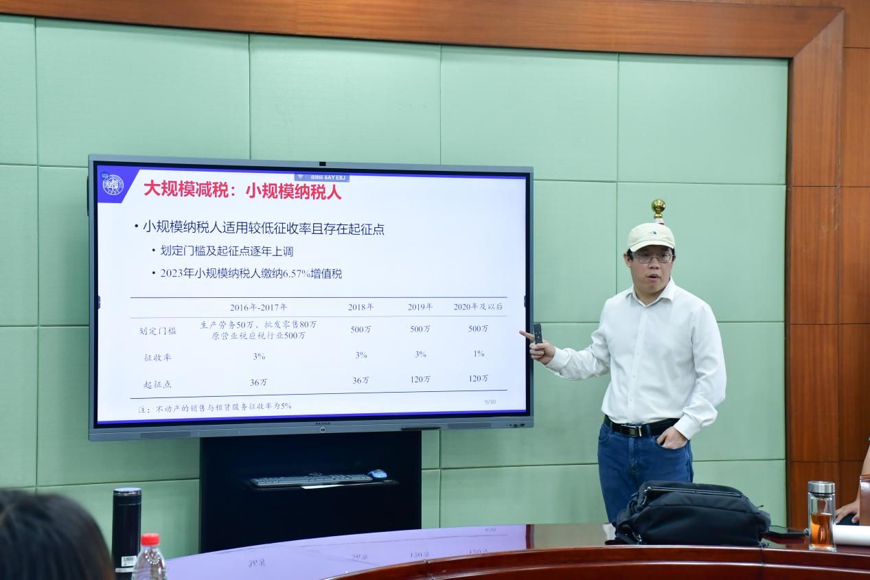 首先,刘志阔教授分析了论文的研究背景。他指出,当前91传媒 领域最核心的问题是“可持续性”问题。基于这一问题,刘教授进一步剖析了中国宏观税负持续下降的因素:大规模减税是主导力量,具体通过税制结构优化、加大科技创新支持力度、逐年提升小微企业税收优惠幅度三方面政策落地见效。此外,价格水平走低成为短期内宏观税负下降的重要驱动因素,典型表现为金融与房地产行业近两年价格下行,以及新兴行业的内卷式竞争带来的影响。