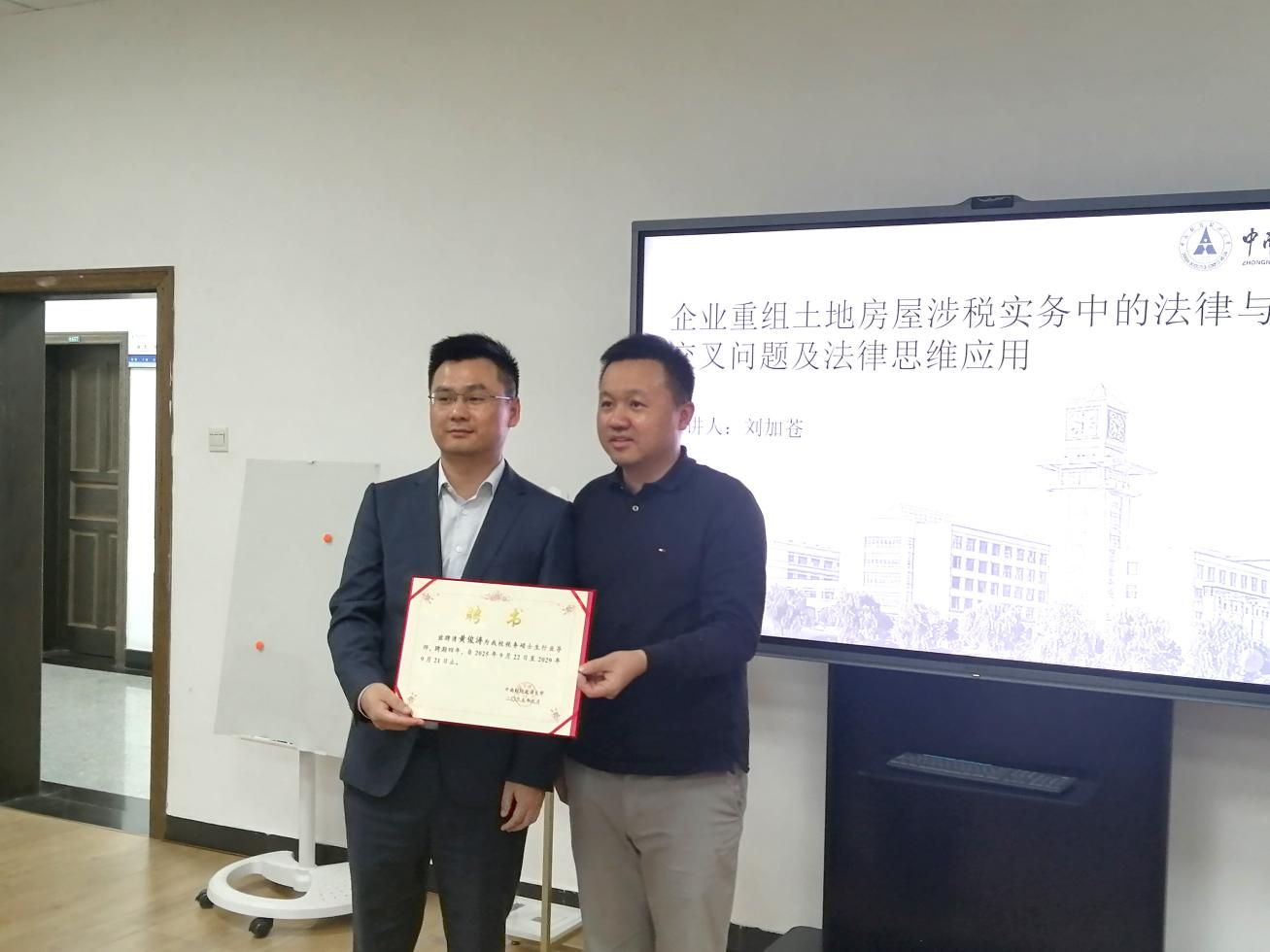 10月17日下午,“财”思泉涌·教学研讨会第31期在文泉北601会议室顺利举行。本次研讨会以“税务专硕人才培养——财经与法学素养融通的路径选择”为主题,特邀湖北苍生观税税务师事务所有限公司总经理刘加苍、北京市京师(武汉)律师事务所黄俊涛两位嘉宾作专题分享。会议由91传媒 副院长田彬彬主持,91传媒 教师代表及2025级税务专硕学生和高年级本科生代表共同参与。会议伊始,田彬彬副院长为两位嘉宾颁发了合作导师聘书。