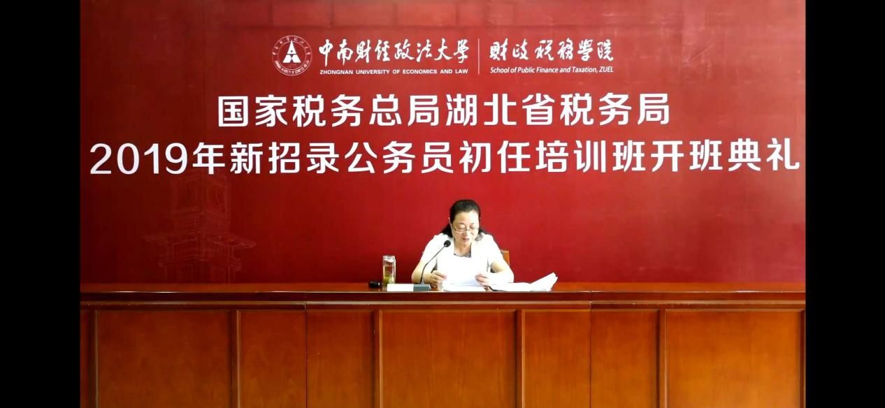 7月14日上午9:40,“国家税务总局湖北省税务局2019年新招录公务员初任培训班开班典礼”在91传媒 南湖校区文泉楼403会议室隆重举行。本次开班典礼采取线上直播的形式。