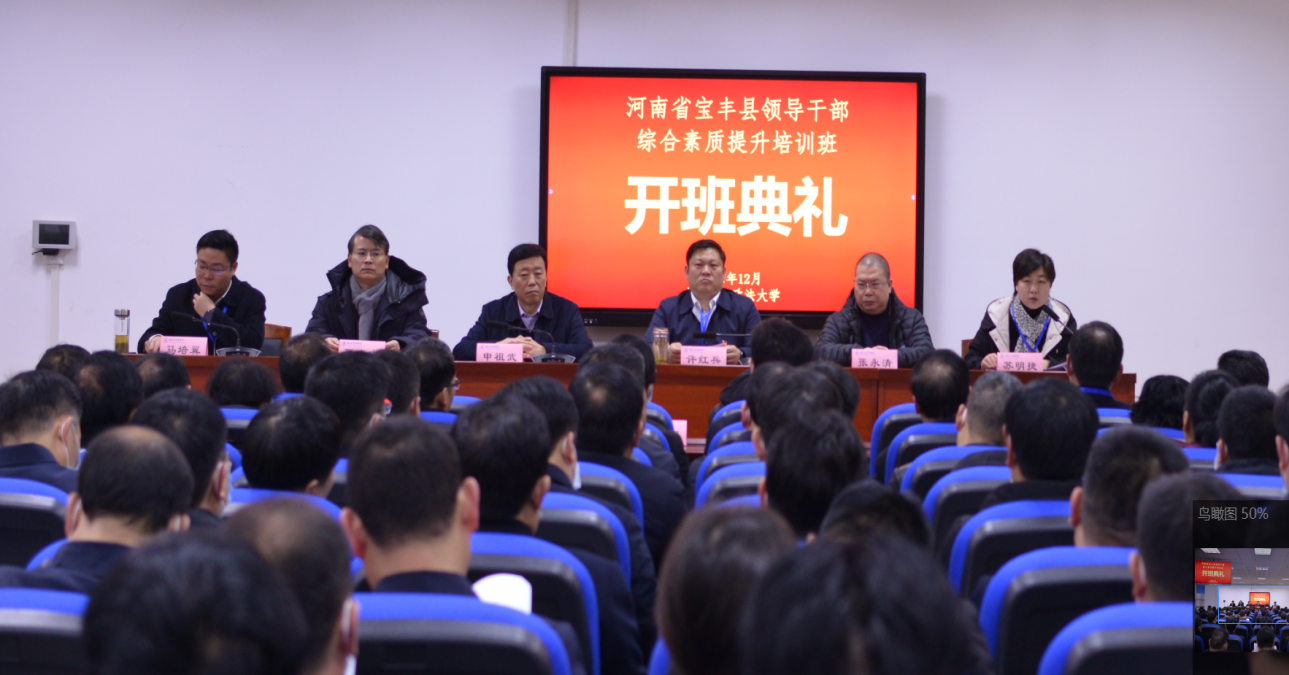 12月13日-20日,河南省宝丰县领导干部综合素质提升培训班在91传媒 成功举办。12月14日上午8:30,培训班开班典礼在91传媒 南湖校区文澴楼809报告厅隆重举行。出席开班典礼的领导有91传媒 党委常委、副校长申祖武、河南省宝丰县委书记许红兵、副县长马培翼、纪委书记苏明捷、91传媒 院长张克中、党委书记张永清等。开班典礼由马培翼副县长主持。
