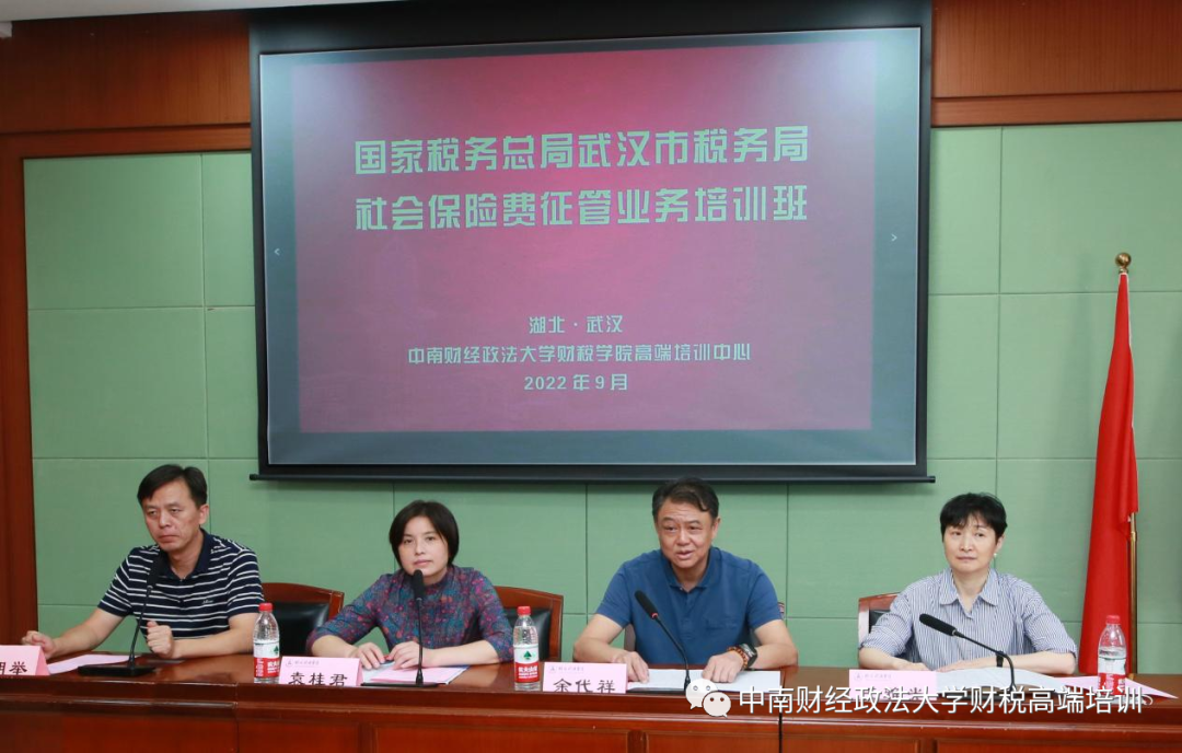 9月26日上午,国家税务总局武汉市税务局社会保险费征管业务培训班在91传媒 南湖校区文泉楼举行开班典礼。出席开班仪式的领导有国家税务总局武汉市税务局党委委员余代祥、国家税务总局武汉市税务局社会保险费处处长王雅光、91传媒 党委书记袁桂君。开班仪式由91传媒 高端培训中心主任张朝举主持。