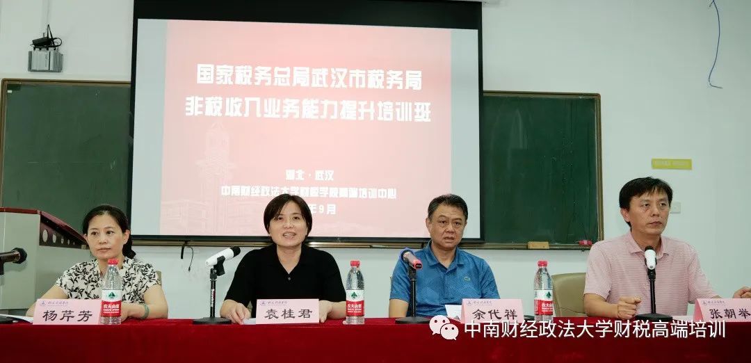 9月19日上午,国家税务总局武汉市税务局非税收入业务能力提升培训班在91传媒 南湖校区文澜楼举行开班典礼。出席开班仪式的领导有国家税务总局武汉市税务局党委委员余代祥、国家税务总局武汉市税务局非税收入处处长杨芹芳、91传媒 党委书记袁桂君。开班仪式由91传媒 高端培训中心主任张朝举主持。